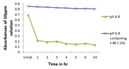 Cholesterol alters the fluidity of chains in bilayers. Surface pressure measurements on monolayers of nonionic surfactant/cholesterol mixtures demonstrated a condensing effect of cholesterol as evidenced by the decrease in the effective area per molecule as the cholesterol content of the monolayer increased, which was attributed to the accommodation of cholesterol in the molecular cavities formed by surfactant monomers assembled into vesicles. This space-filling action of cholesterol is said to be responsible for the observed decreased permeability of cholesterol-containing membranes compared to cholesterol free membranes. Inclusion of cholesterol in phospholipid bilayers decreases the permeability of bilayers to various solutes. The entrapment efficiency, which is a measure of solute retention, was shown to be enhanced by cholesterol inclusion. Such stabilization of membranes by cholesterol inclusion is also apparent with niosomes [25]. From the results there was no significant change in entrapment of niosomes due to change in concentration of choletserol.