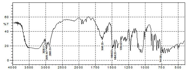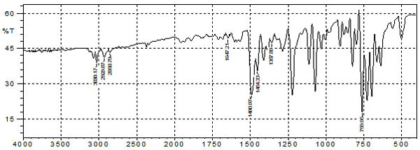 The pure drug (Bifonazole) and its mixture with cholesterol and span 60 were mixed separately, with infrared (IR) grade potassium bromide (KBr) in the ratio of 1:100. Corresponding pellets were prepared by applying 6 metric ton pressure with a hydraulic press. The pellets were scanned in an inert atmosphere over a wave number range of 4000 – 400 cm-1 using FTIR instrument (Shimadzu IR Infinity-1, Japan).
