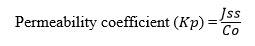 To study the release kinetics, data obtained from in vitro permeation studies were fitted in various kinetic models viz. zero order as cumulative percent of drug permeated versus time, first order as log cumulative percentage of drug remaining versus time and Higuchi’s model as cumulative percent drug permeated versus square root of time. To determine the mechanism of drug release, the data obtained were fitted into Korsmeyer and Peppas equation as log cumulative percentage of drug released versus log time, and the exponent ‘n’ was calculated from slope of the straight line. For slab matrix, if n < 0.5 - quasi-Fickian Diffusion, if exponent is 0.5, then diffusion mechanism is fickian; if 0.5 < n < 1.0, mechanism is non- fickian, n = 1 to Case II (relaxational) transport, and n > 1 to super case II transport [17,18].