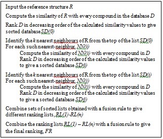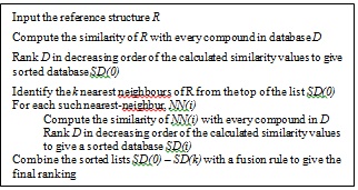 SS is a single target search that had been enhanced into multi-target search systems that works based on Neighborhood Behavior. There are two interrelated methods that had been suggested by the Willett’s group in Sheffield i.e. Group Fusion (GF) and Turbo similarity searching (TSS). GF works by combining the searching results of SS with a number of different queries (often ten). Whereas TSS is an enhanced SS via incorporation of GF at the second stage of the algorithm.