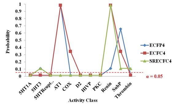ECFC4: 5HT1A > PKC > Thrombin > D2 > 5HT3 > HIVP > 5HTReuptake > COX > SubP > Renin > AT1
