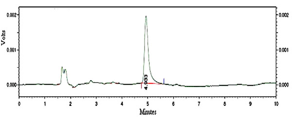 Fig. (4). Chromatogram of bromazepam obtained from analysis of tablet dosage forms. |